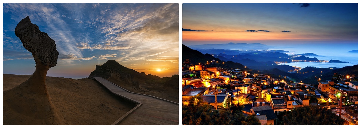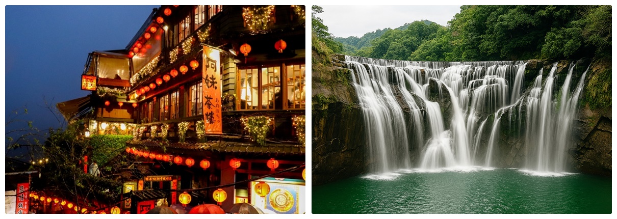 白天走訪九份老街,品茶、嘗芋圓,看山城海景;下午到十分老街放天燈,為旅程留下美好祝愿;沿途還能順訪瀑布與北海岸。