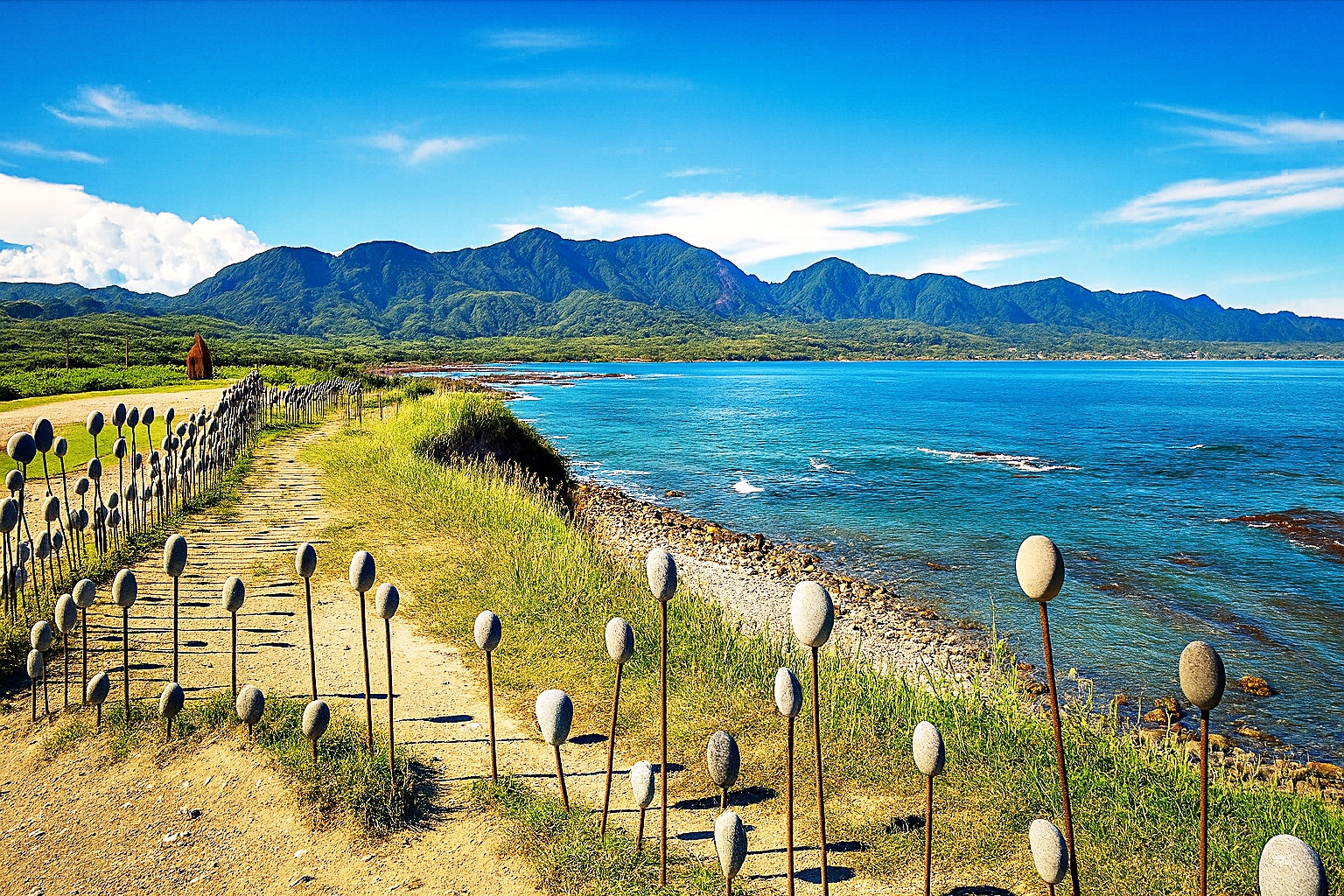 一片結合藝術與自然的海岸草原,設有漂流木裝置藝術與觀景平台,是台東在地文青最愛的放空據點。
